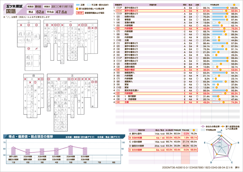 五ツ木模試を受け、個人成績表の弱点を克服し、次回の五ツ木模試で再挑戦する―